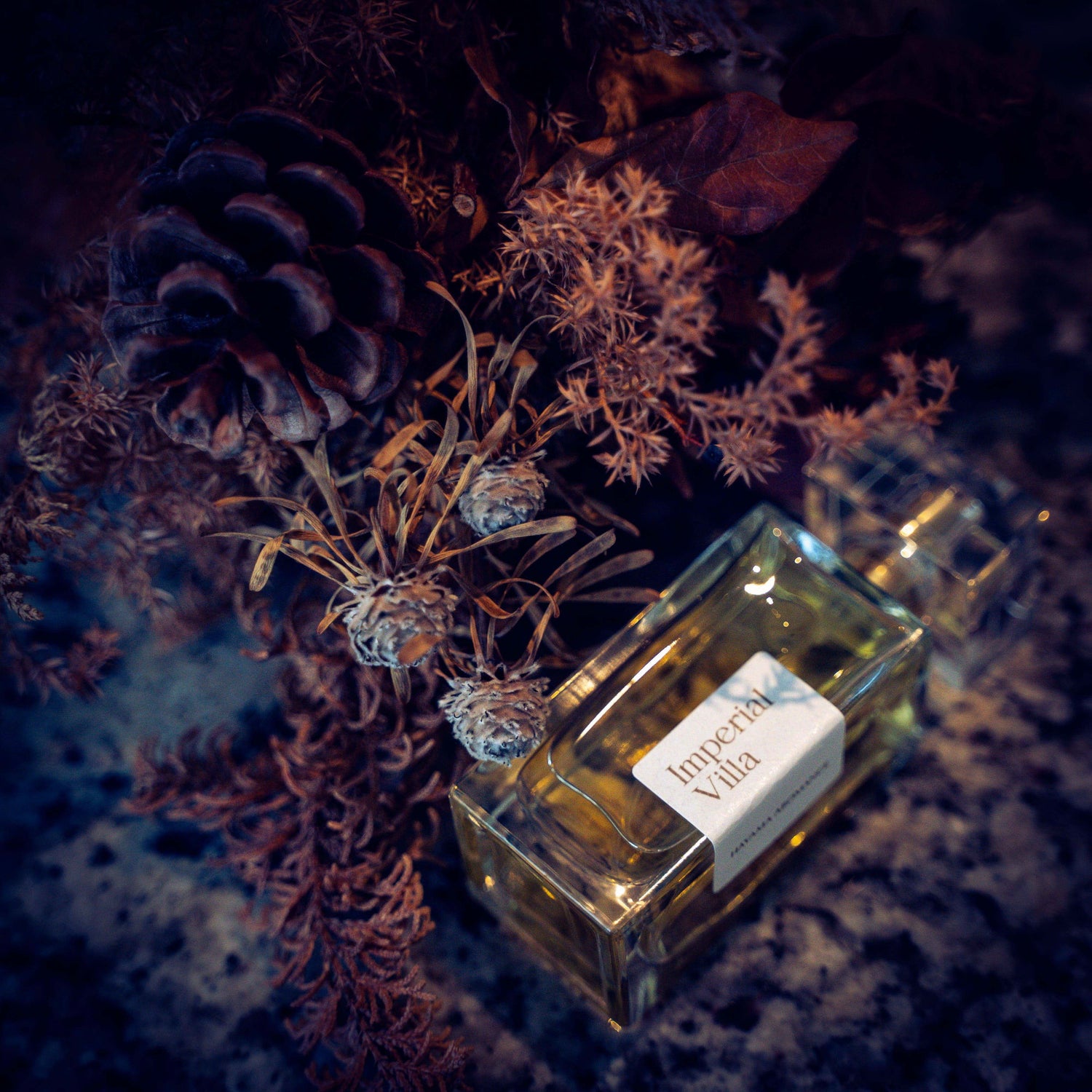 葉山の御用邸をイメージして調香したオードパフュームです。庭園には糸杉 黒松 躑躅などが群生して、古い石橋の苔や羊歯が印象的です。暖炉がある部屋からは富士山の夕陽が見えます。そんな香りがインペリアルヴィラです。